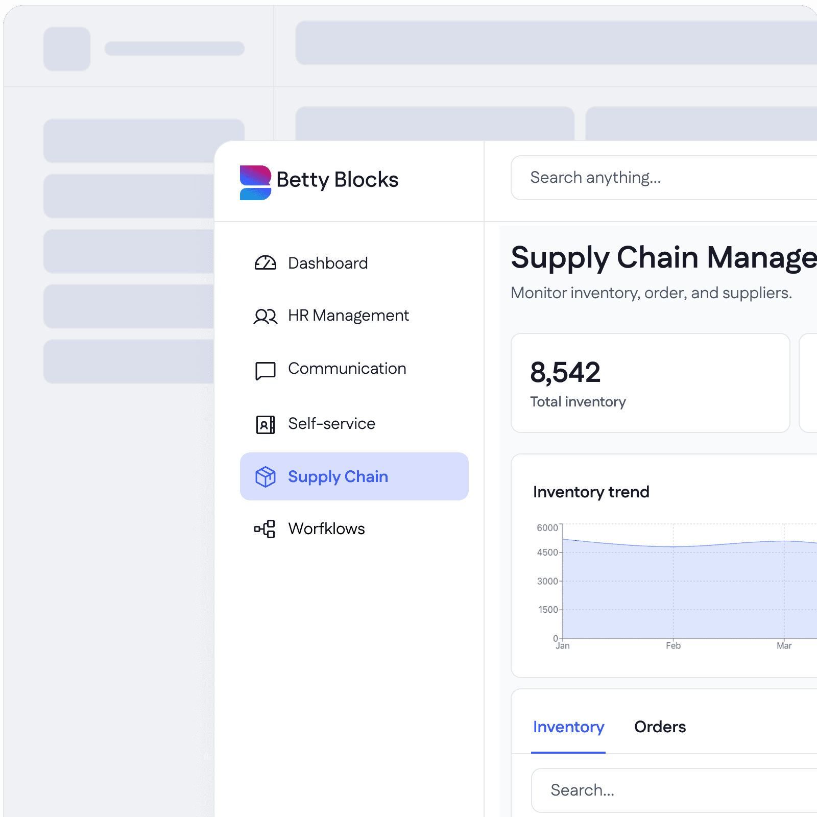 Every app built on Betty Blocks is registered in a single metadata model. IT can see who built it, when, what it connects to, what it costs, and whether a similar solution already exists somewhere else in the organization. Not after the fact. From the beginning.
